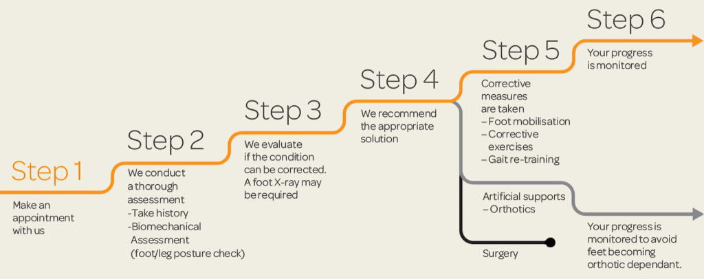 We specialize in Foot Mobilisation Techniques (FMT), which correct the root cause of pain by restoring natural movement to the joints, rather than relying only on external supports like orthotics.
